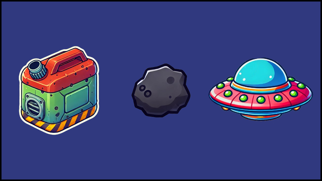 — Meteors: Some objects in space may pose a threat to the player's spaceship, including meteors. If they collide with the spaceship before the player destroys them, the spaceship loses a significant amount of fuel, potentially ending the flight earlier than expected!