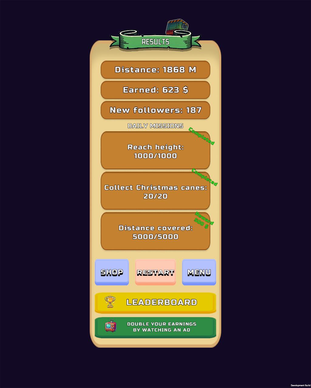 — Leaderboard: All players are registered on an online leaderboard that displays their highest flight distance. Players can view the top 7 players worldwide and compete against each other.